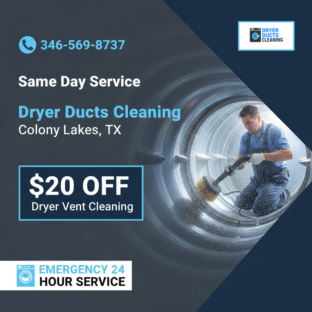 Colony Lakes Dryer Duct Cleaning TX specializes in removing hidden blockages to restore your dryer's peak performance. Trust Colony Lakes Dryer Duct Cleaning TX to lower your power costs and extend the life of your unit. Contact Colony Lakes Dryer Duct Cleaning TX to start saving money with improved functionality.